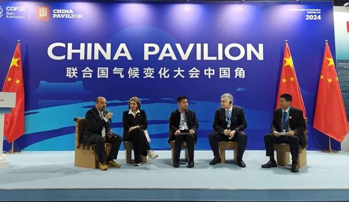 在COP29上,蓝区“中国角”位于巴库奥林匹克体育场国家角区东南角,占地面积300平方米,分为边会会议区、展览展示区、文化体验区、交流洽谈区、办公保障区等5个功能区域,会议期间举行主题边会、专题展览、视频展播、文化特色展示、宣传资料发放等活动。“中国角”会议区设立公众日、峰会日、新能源日、碳市场日、合作日、数字化日、气候资金与技术日、适应日、企业日、地方日等10个主题日,举办50场主旨论坛。